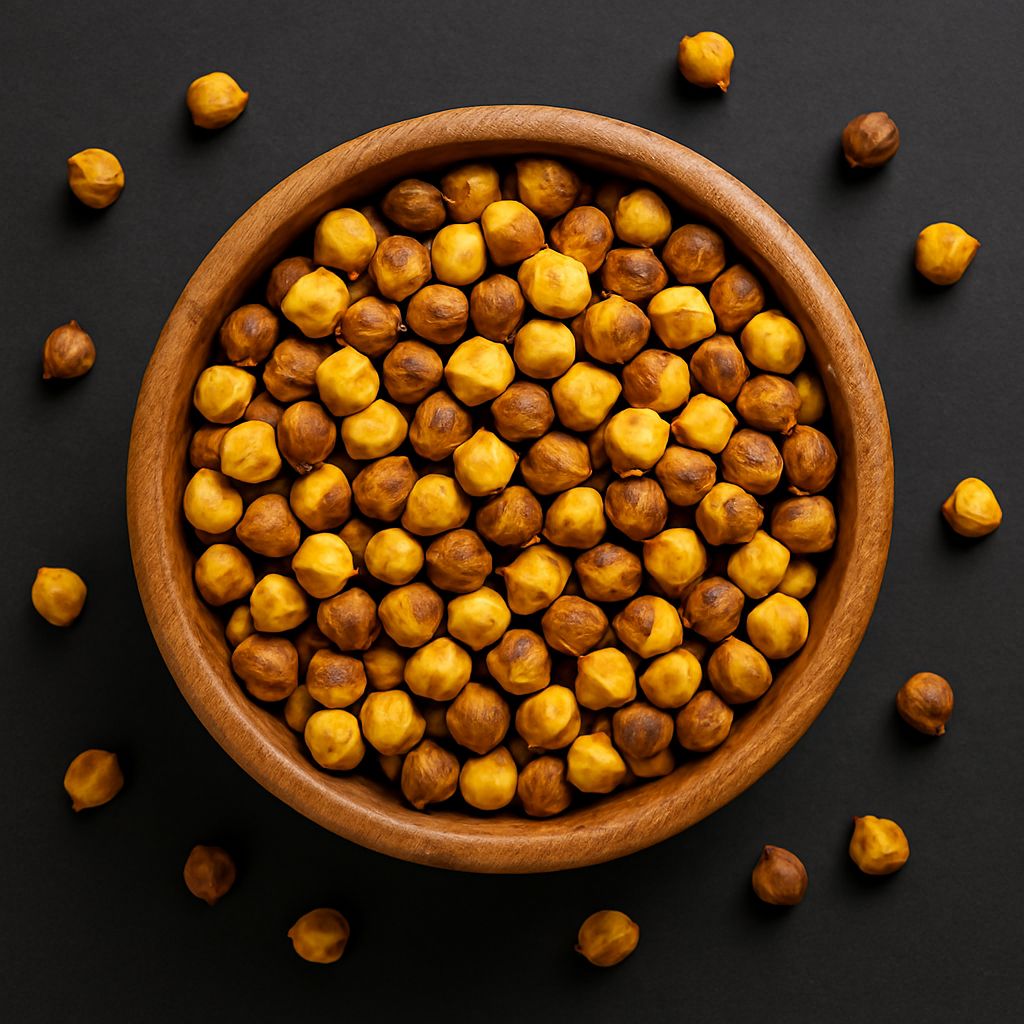 Bhuna Chana are roasted black gram kernels. They are crunchy, protein-rich, Low-Calorie Snack Can be eaten plain, mixed with jaggery, or ground into sattu. Roasted black gram Kernals are Healthy, tasty, and ready to eat!. Supports digestion and keeps you full longer.